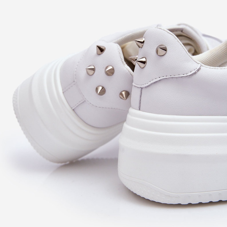 Elegantní a pohodlné tenisky Goe, které kombinují sportovní postavu s městským stylem. Vyrobeno z přirozené a prodyšné tkaniny sítě, nastaveno na masivní, 5 cm platformu - zaručuje stabilitu a módní vzhled každý den. Ztužená pata byla zdobena jemnými čepy, což přidává původní přízvuk k botám. Krajka -Up, s kulatým a nízkým horním (6,5 cm) - ideální pro příležitostné sady.