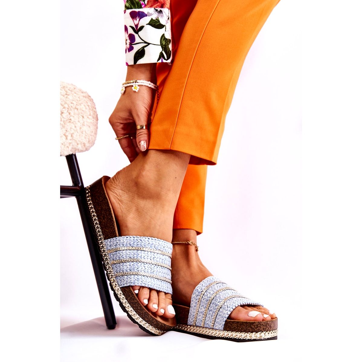 Elegantní a zároveň pohodlné ženské pantofle S. Barski je denně ideálním návrhem. Horní část vyrobená z pleteného plastu ve formě copánků je zdobena jemnými řetězci na přední straně a kolem chodidel, což modelu přidává módní postavu. Klidingová struktura, zaoblený, objevený nos a pohodlná ekologická vložka způsobují, že boty jsou ideální pro procházky, nakupování nebo pohodlnou domácí obuvi.