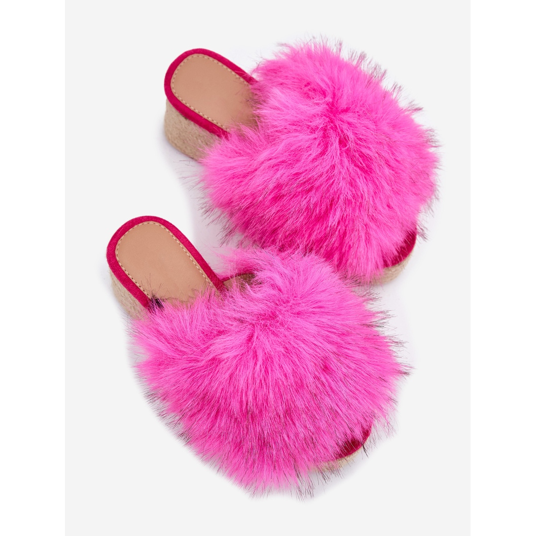 Inna marka Dámské klíny s klínem s kožešinou a cop fuchsia růžový