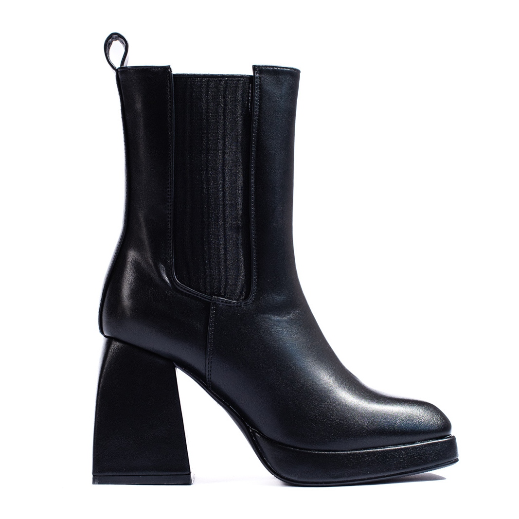 Dámské Chelsea boty na širokém podpatku, černé "Shelovet", jsou kvintesencem stylu, pohodlí a nadčasové elegance. Tyto boty jsou určeny pro ženy, které oceňují pohodlí a módní design. Díky jejich jednoduchému, ale stylovému tvaru se hodí téměř ke každému typu oblečení, od ležérních džín po elegantní šaty.