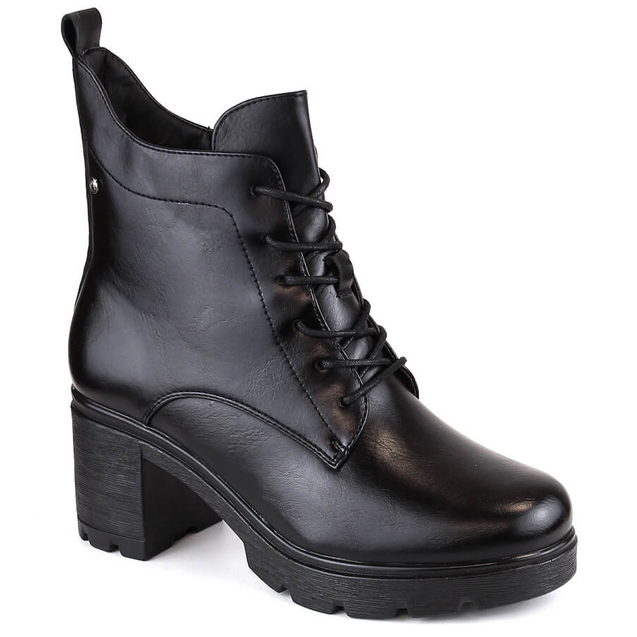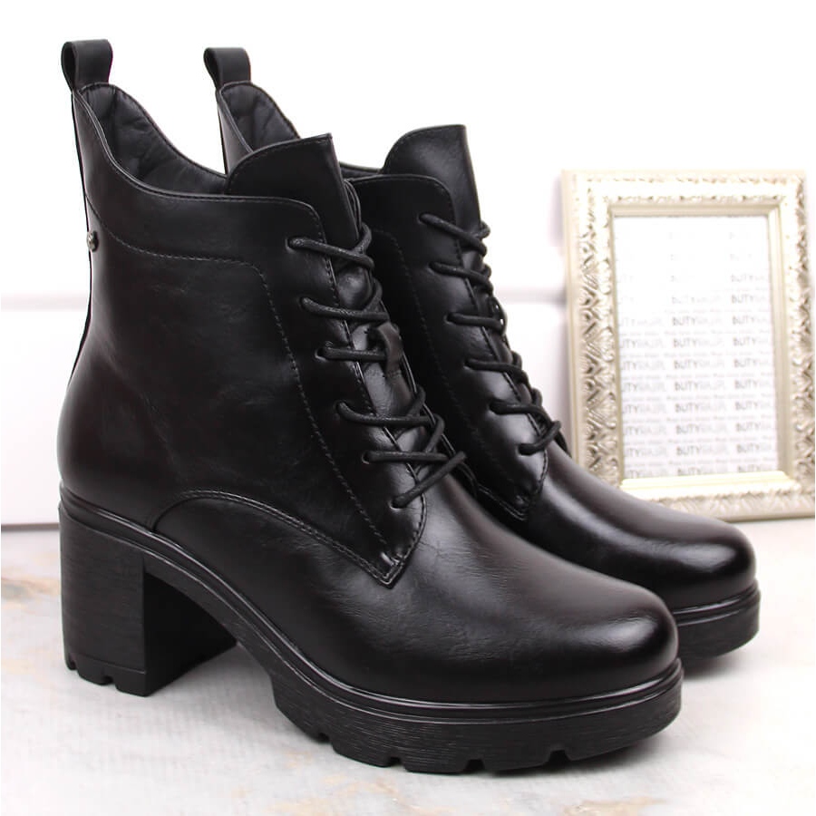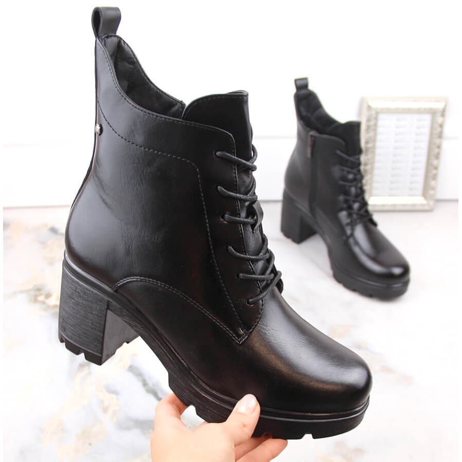 Dámské zateplené černé kotníkové boty na vysokém podpatku a platformě Potocki SZ12229 kombinují eleganci, pohodlí a praktičnost a představují dokonalou obuv pro moderní ženu, která ocení styl i teplo v chladnějších dnech.