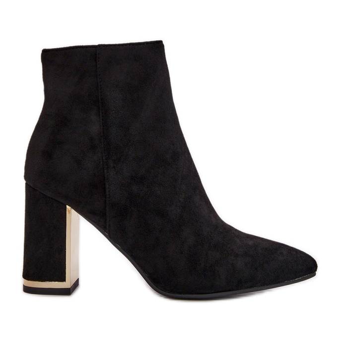 Inna marka Dámské kotníkové boty na vysokém podpatku, zapínání na zip, zateplené, eko semiš, černý Mevair černá