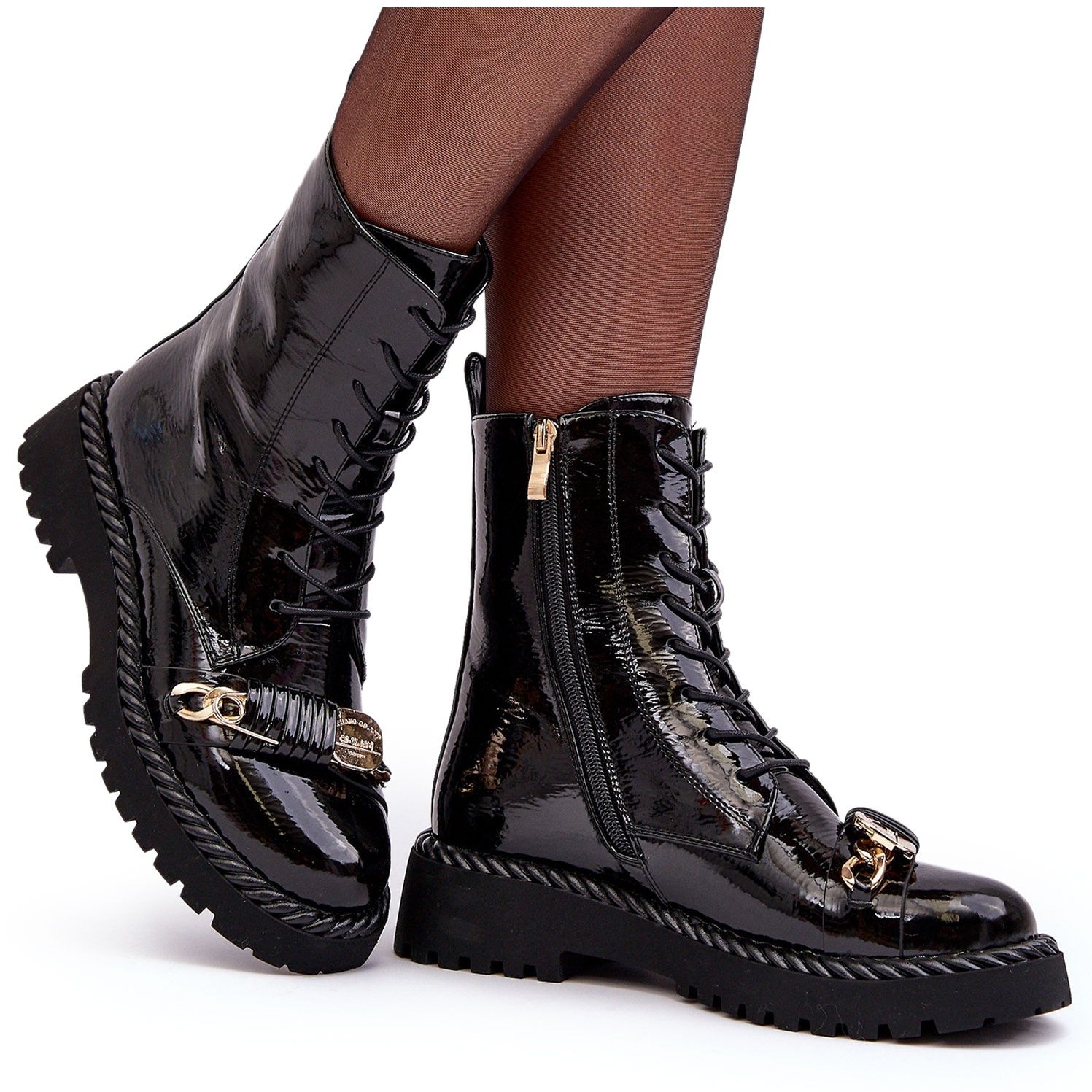 S.Barski Dámské kotníkové boty Patent Worker s ozdobou Černá S.Barski MR870-67