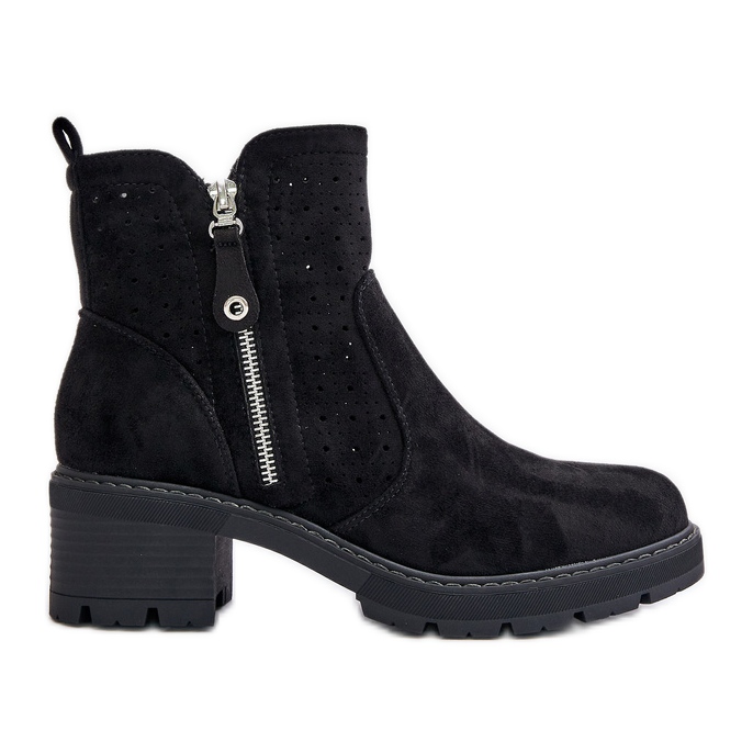 Inna marka Dámské kotníkové boty s prolamovaným vzorem na vysokých podpatcích, černá Oviria