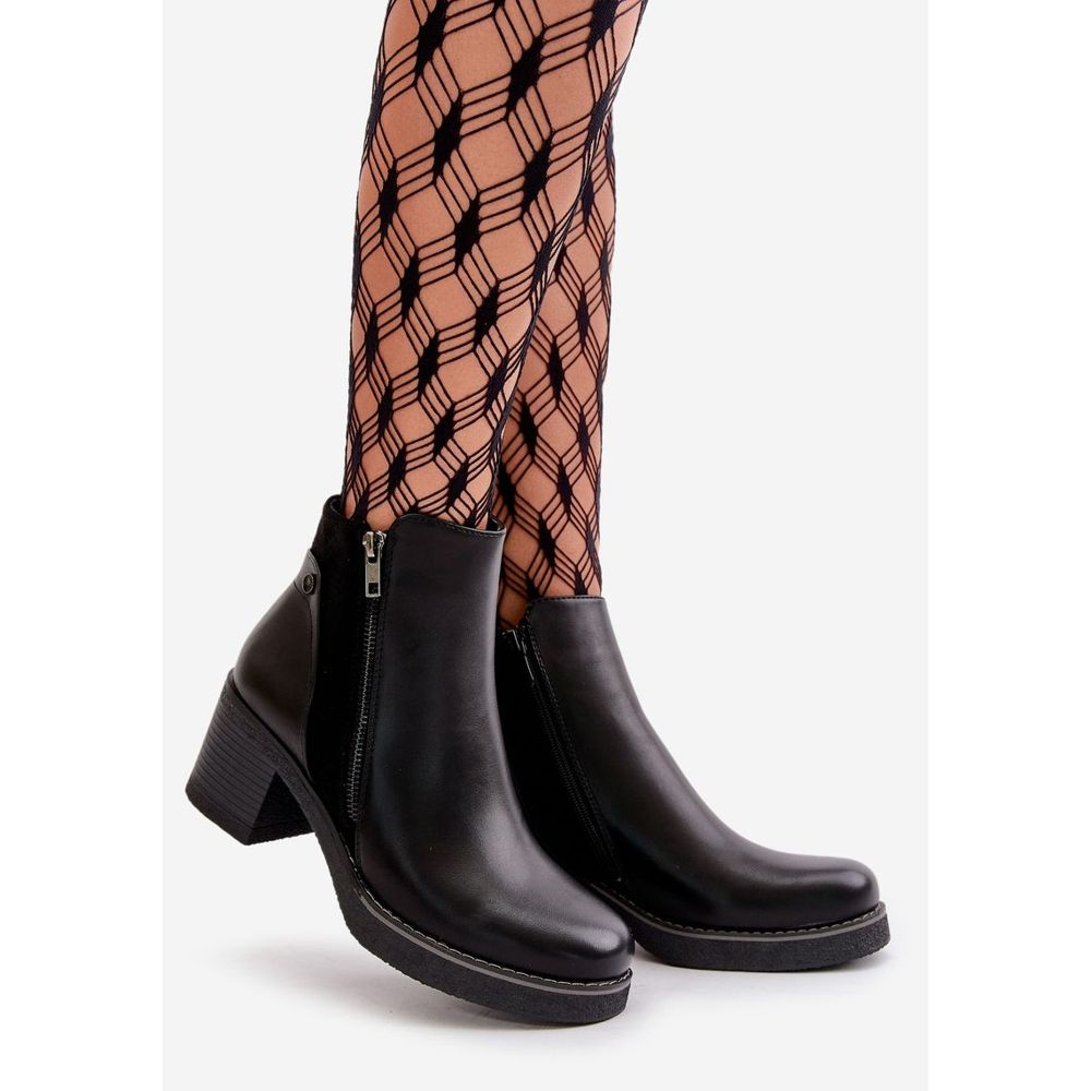 Inna marka Dámské kotníkové boty vyrobené z eko kůže na vysokém podpatku Teplá černá Revianna