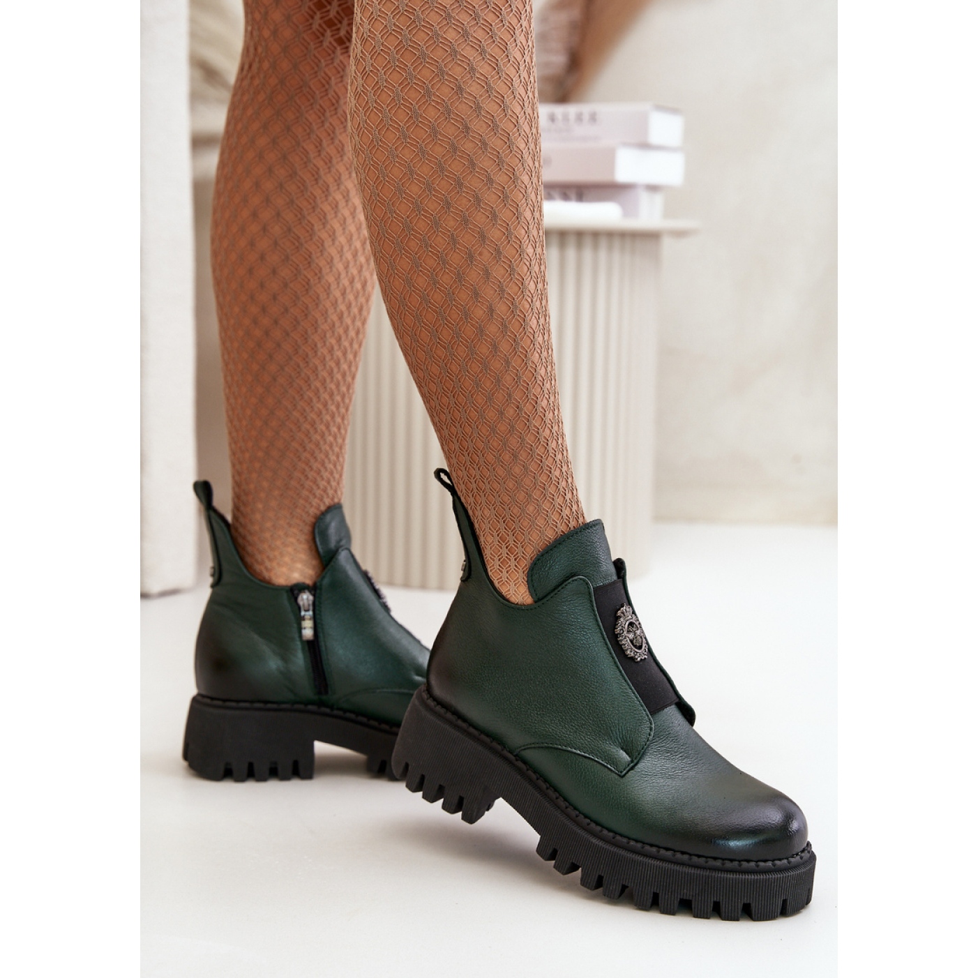 Představujeme ženské boty Zazoo v krásném, tmavě zeleném odstínu, který dokonale doplní váš šatník. Vyrobeny z vysoce kvalitní přírodní kůže kombinují pohodlí a eleganci. Jejich jedinečný design založený na masivní patě s výškou 6 cm a platforma s drážkami (3,5 cm) zajišťuje stabilitu a pohodlí při nošení.