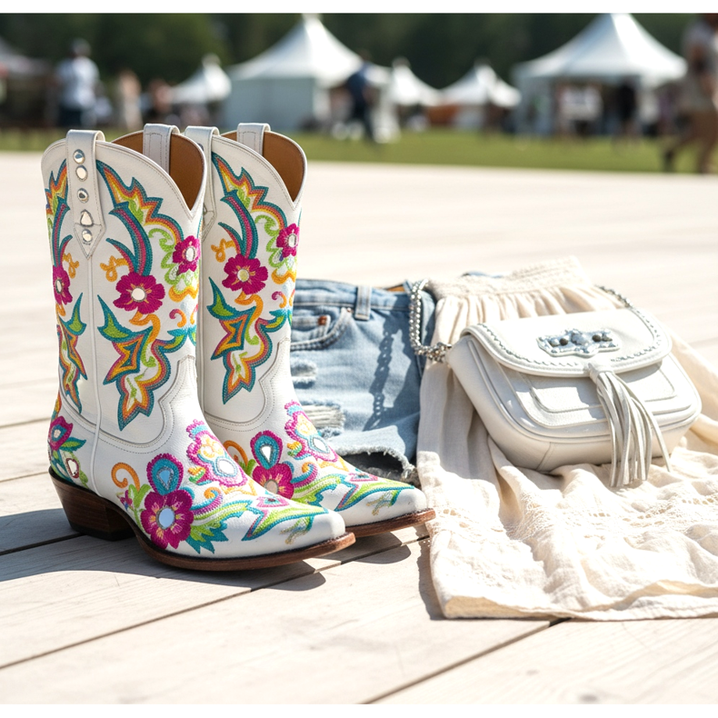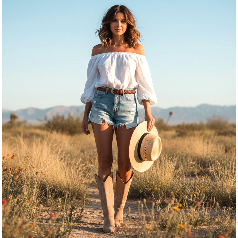 Kovbojské boty jsou perfektní obuví na přechodné období a léto. Podívejte se, jak je zkombinovat se vzdušnými boho šaty a šortkami, abyste vytvořili módní festivalový look.