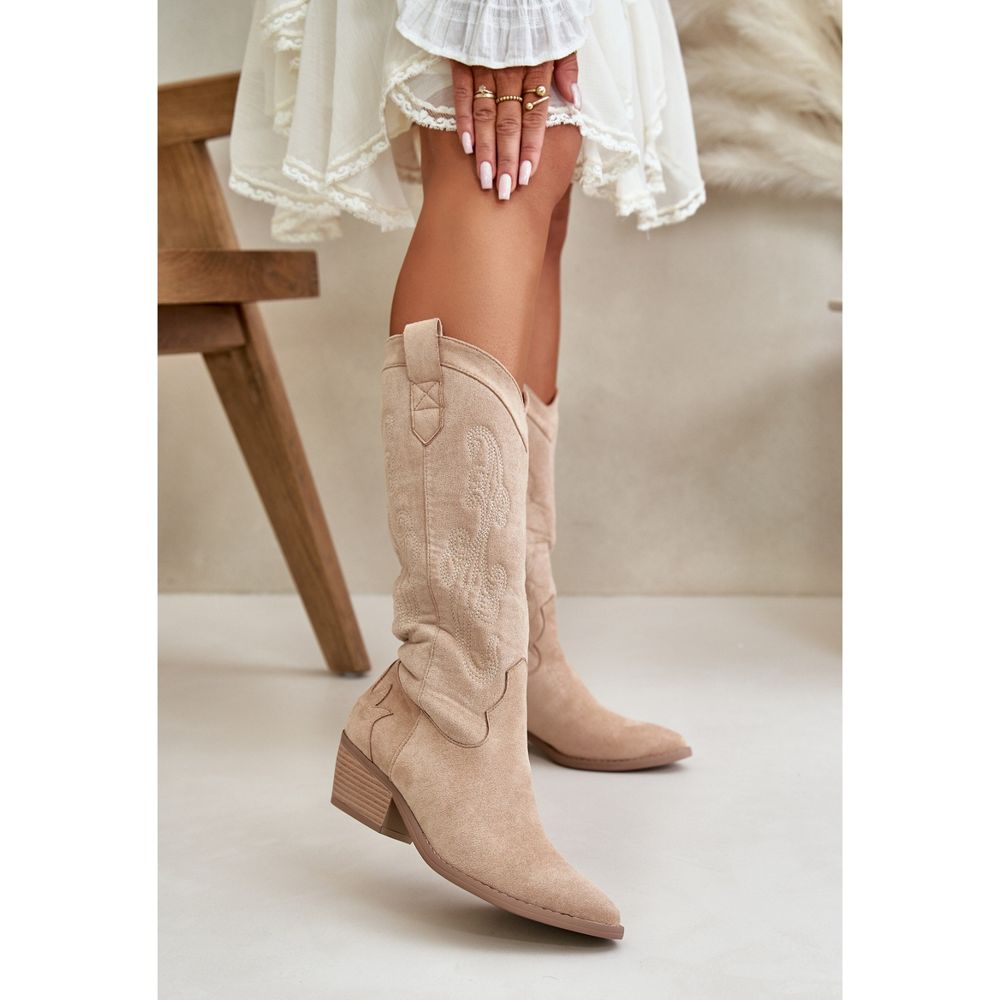 Podrobnosti: Dámské kovbojské boty na nízkém podpatku vyrobené z ekologického semiše, béžová Ligelia béžový