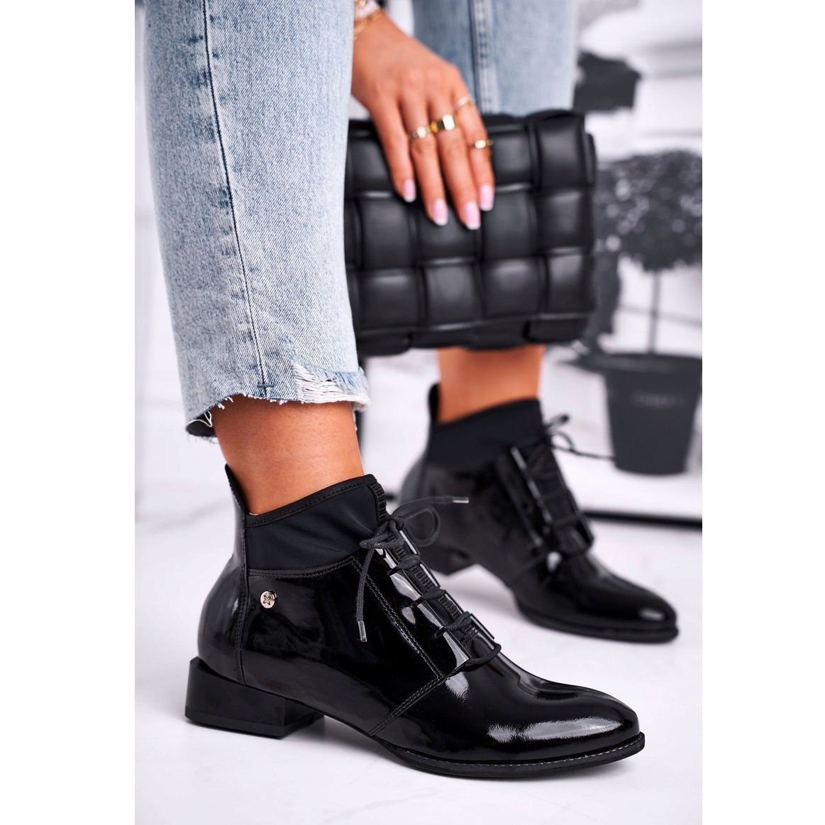 Černé kotníkové boty Maciejka se skvěle hodí k ležérním i elegantnějším outfitům. Další výhodou jsou kamínky a lakované detaily, které jim dodávají módní charakter. Nečekejte – investujte do svého stylingu a zviditelněte se v těchto jedinečných botách!