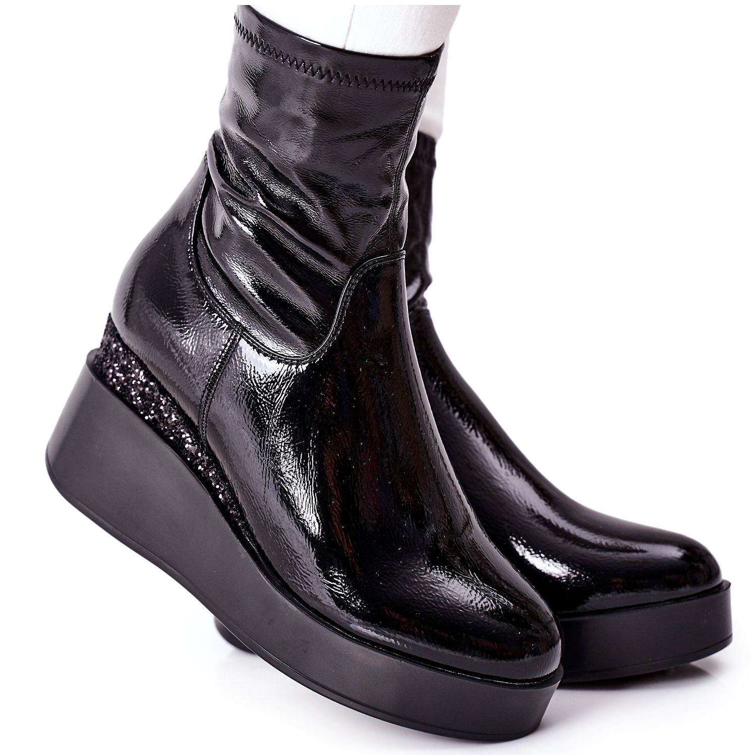 Podrobnosti: S.Barski Dámské kozačky na klínku lakované černou terapií černý