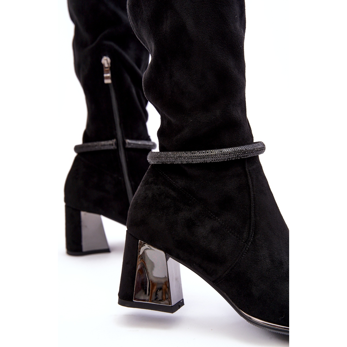 Boty se rozlišují 7 cm vysokou patou, což zajišťuje stabilitu a pohodlí při nošení. Opticky hubnutí nosu ve stylu a eleganci Spitz Add a horního dosahu přes koleno, částečně připevněný zipem, efektivně zdůrazňuje nohy.