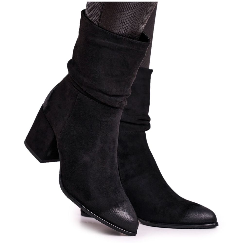 Vinceza Vinceza Dámské kozačky na podpatku z eko semiše černé na boku černá