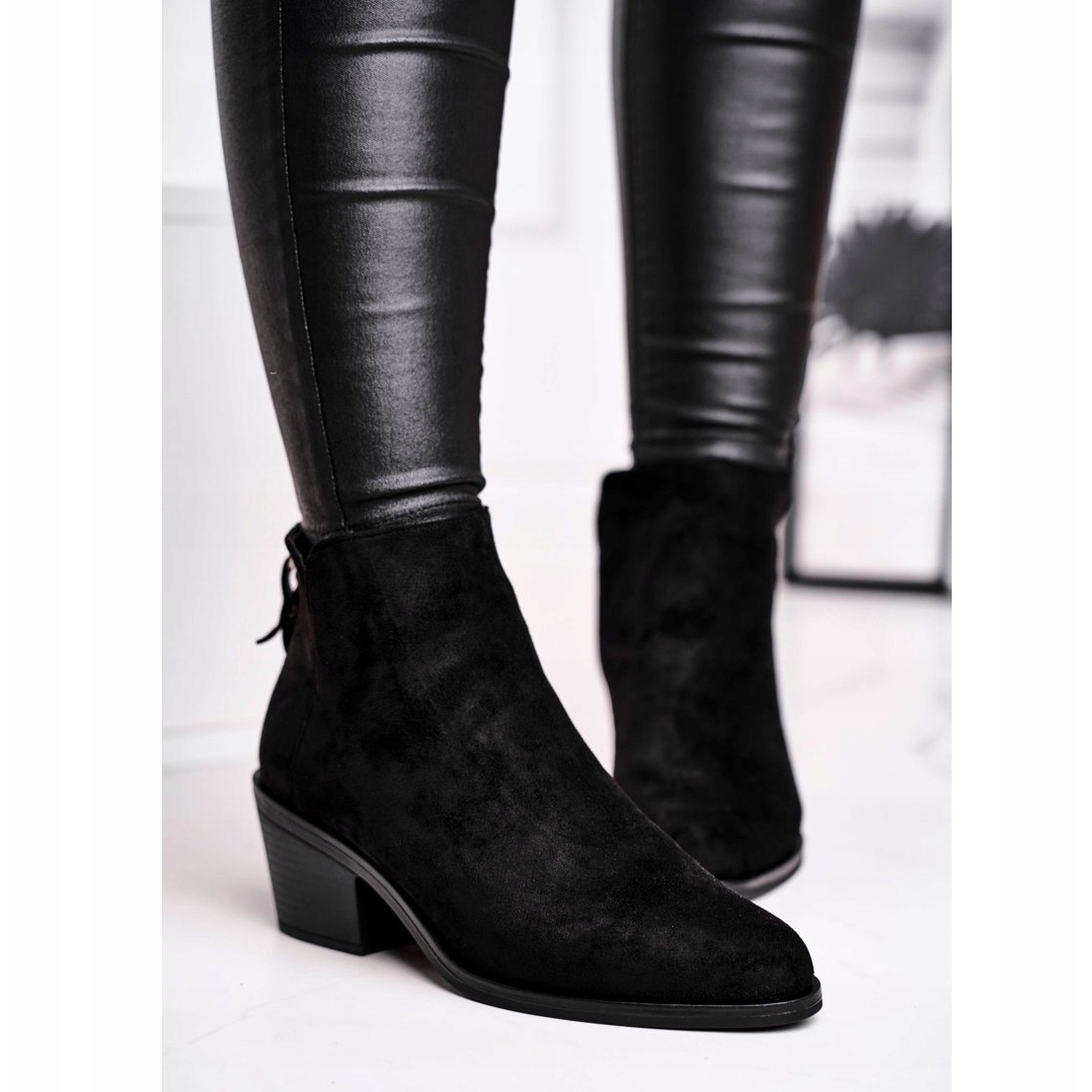 Svršek boty je vyroben z vysoce kvalitní ekologické kůže imitující semiš a dodává jí jedinečný vzhled. Díky klasické, kulaté špičce a horní výšce 10,5 cm boty perfektně sedí na noze a zvýrazňují její tvar. Zip na boku navíc usnadňuje nazouvání a svlékání.