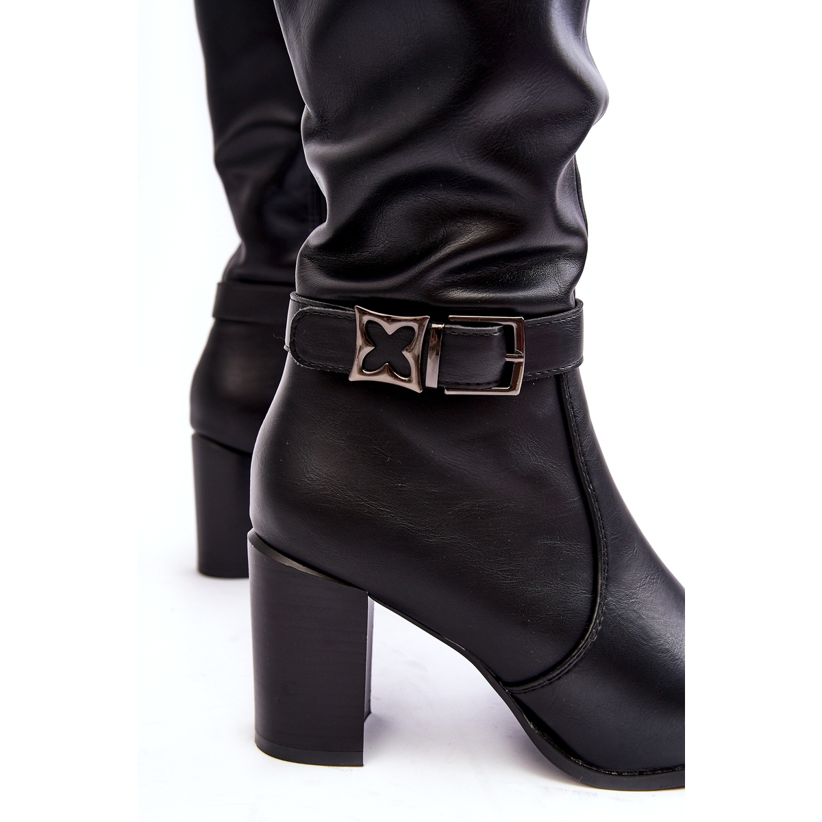 Sergio Leone Sergio Leone Dámské kozačky na vysokém podpatku s přezkou, teplá černá Sendilia