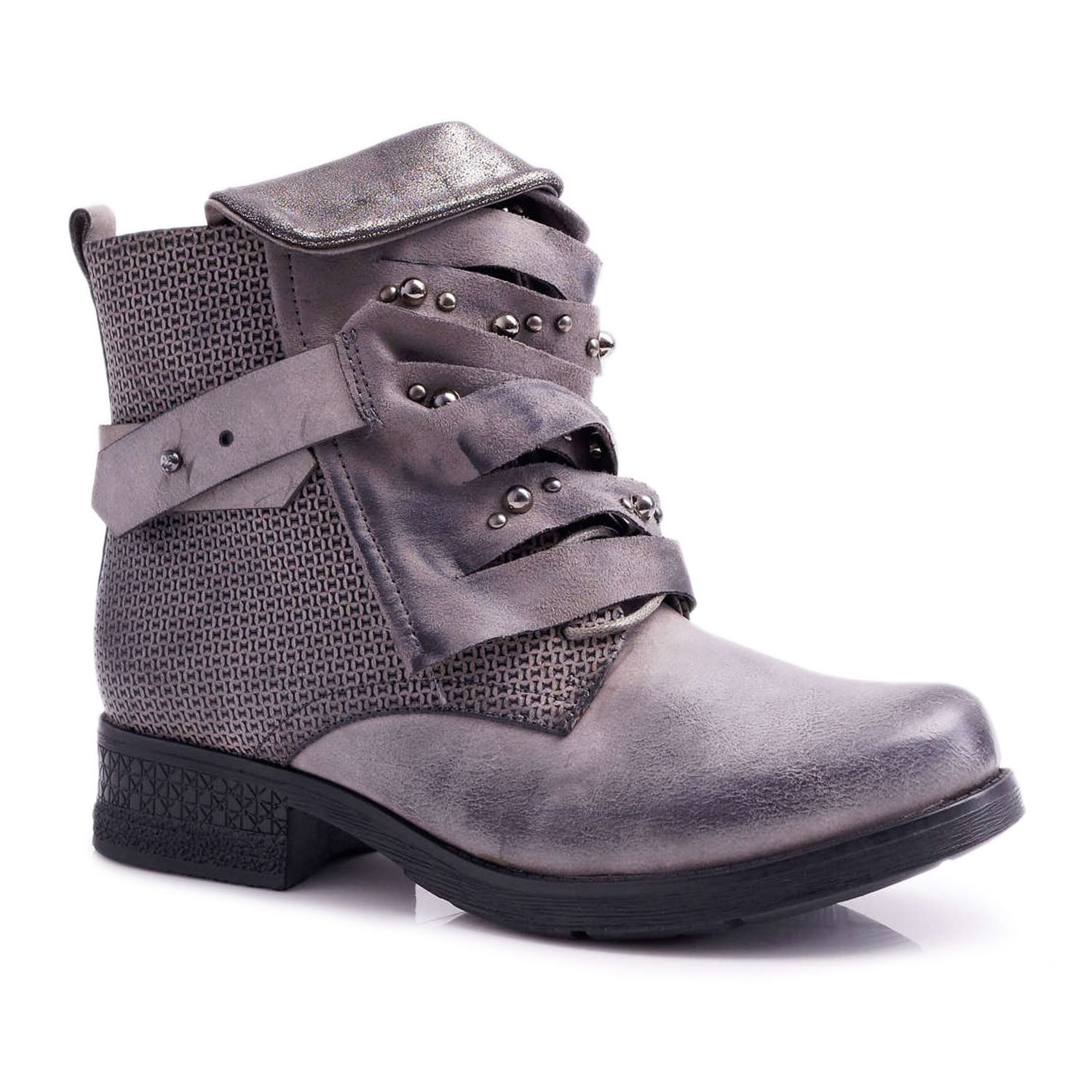 Objevte mimořádný komfort a styl s kotníkovými botami FG2 Debra v šedé barvě. Tyto módní dámské boty se vyznačují klasickým vzorem, který je na svršku decentně zdoben stříbrnými kamínky a dodávají jim jedinečný charakter. Díky plochému 3,5 cm podpatku jsou tyto kozačky perfektní volbou pro mnoho různých stylů – od ležérních až po elegantnější.