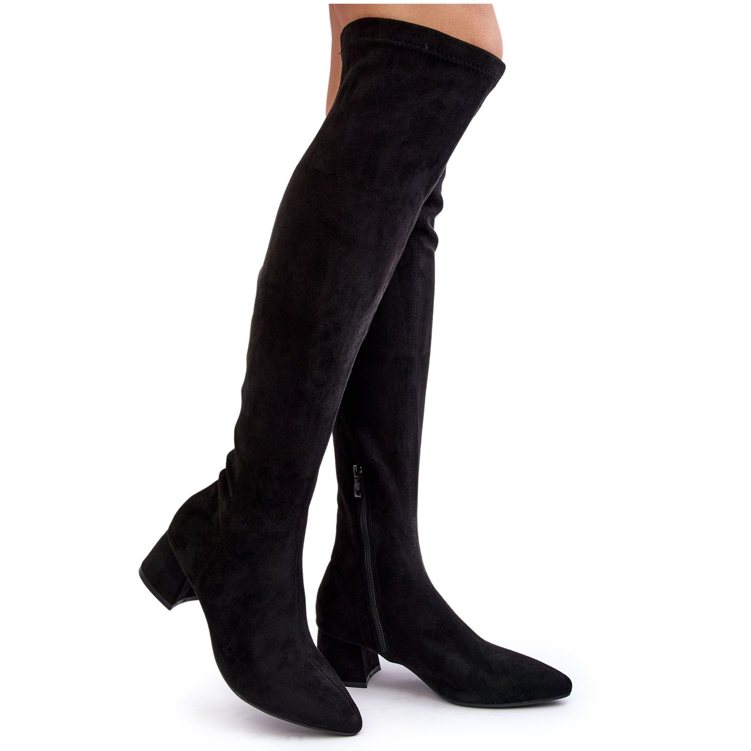 Podrobnosti: Dámské kozačky nad kolena na nízkém podpatku černá Maidna