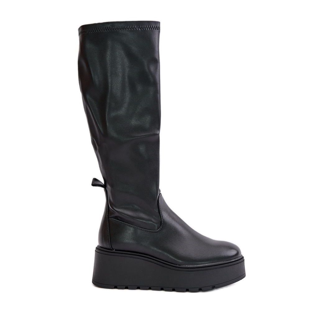 Objevte mimořádnou eleganci a pohodlí nošení díky ženským botám na koleni na plošině a klínu od Vinceze (Model 58342) v černé barvě. Tyto stylové boty, vyrobené z vysoce kvalitní ekologické kůže, jsou ideální volbou pro chladnější dny a díky jemnému oteplování poskytují teplo a pohodlí.