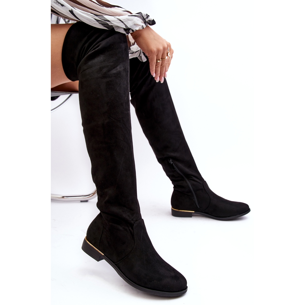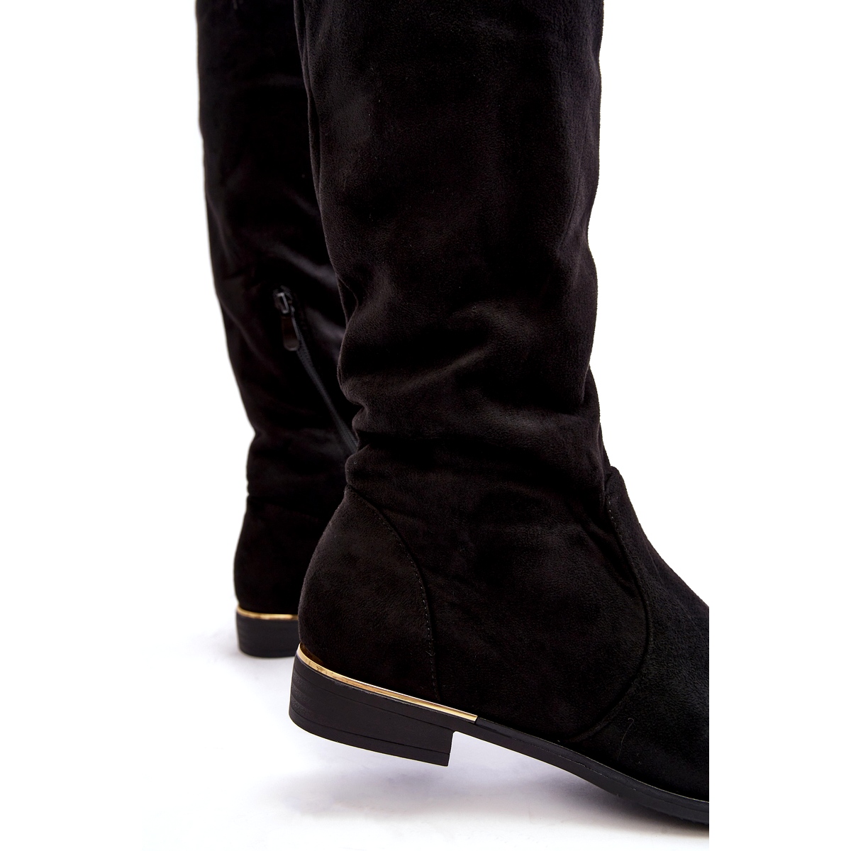 Super Me Super Me Dámské kozačky nad kolena na plochých podpatcích, černá Bikka