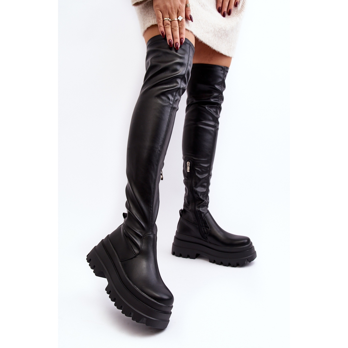 Inna marka Dámské kozačky nad kolena s robustní podrážkou, černá Chinasa