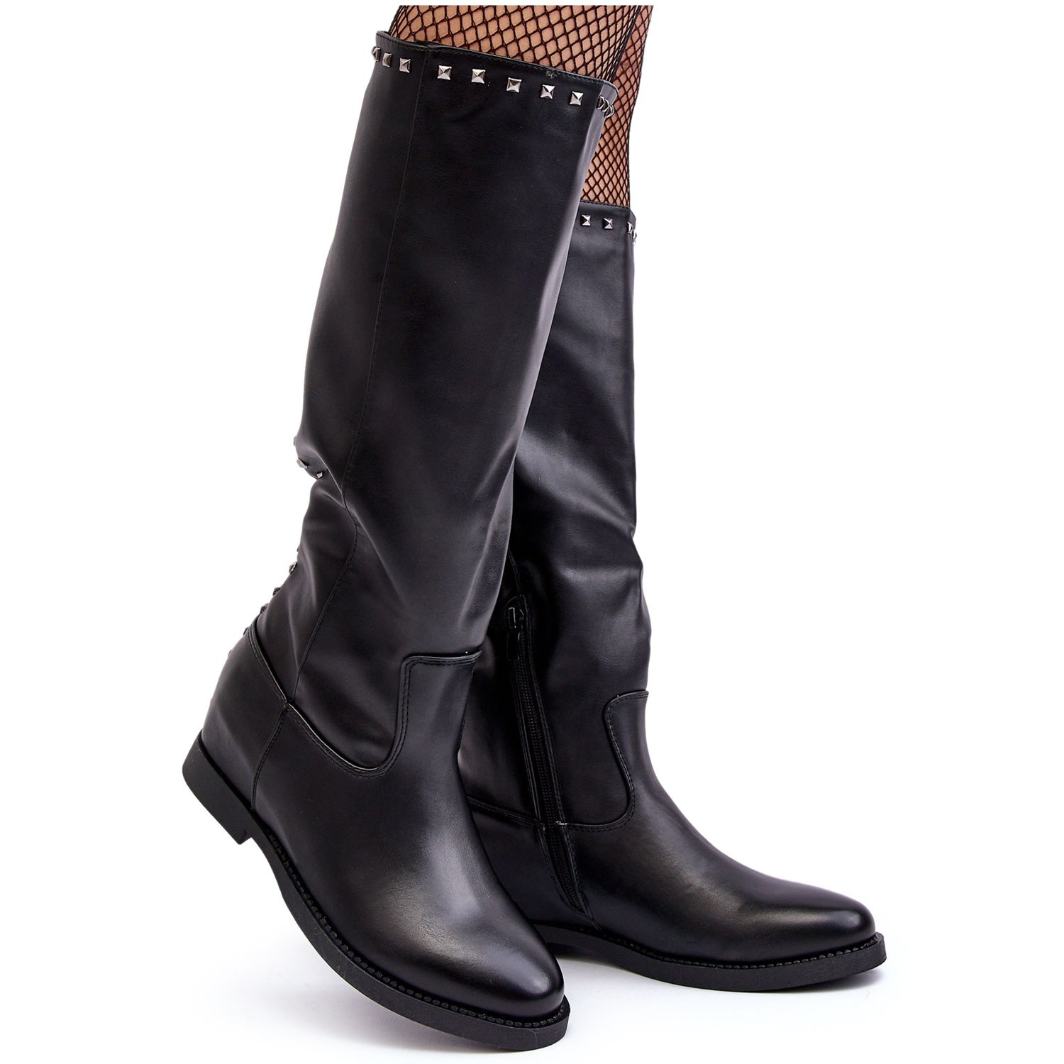 Dámské boty před kolenní bevitidou - černá, zdobená čepy