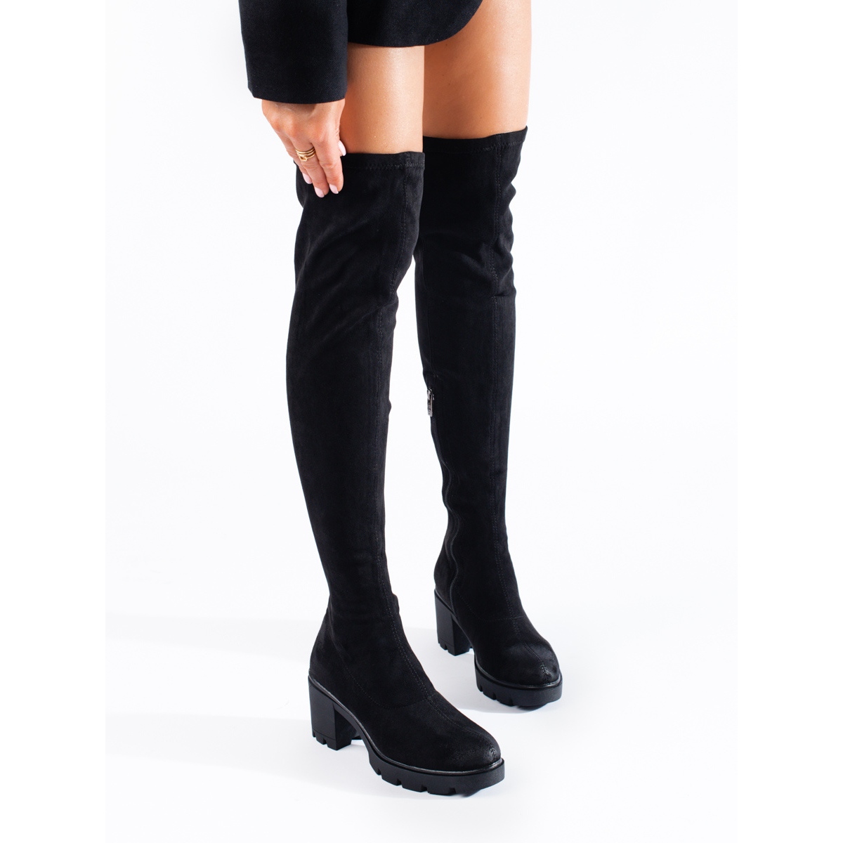 SHELOVET Dámské kozačky po stehna na sloupku Shelovet černé černá