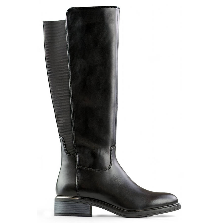 Jejich klasická černá barva je způsobuje, že se hodí k mnoha stylům - příležitostným i elegantnějším. Výška horního svršku asi 40 cm dokonale sahá k kolenu a plochá pata s výškou 4 cm přidává jemnost a usnadňuje denně nošení.