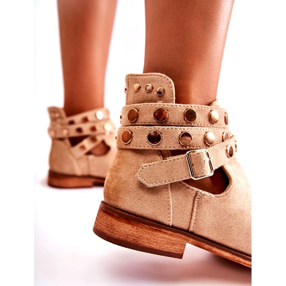 WS1 Dámské boty Larino - béžové, s kamínky, ploché podpatky