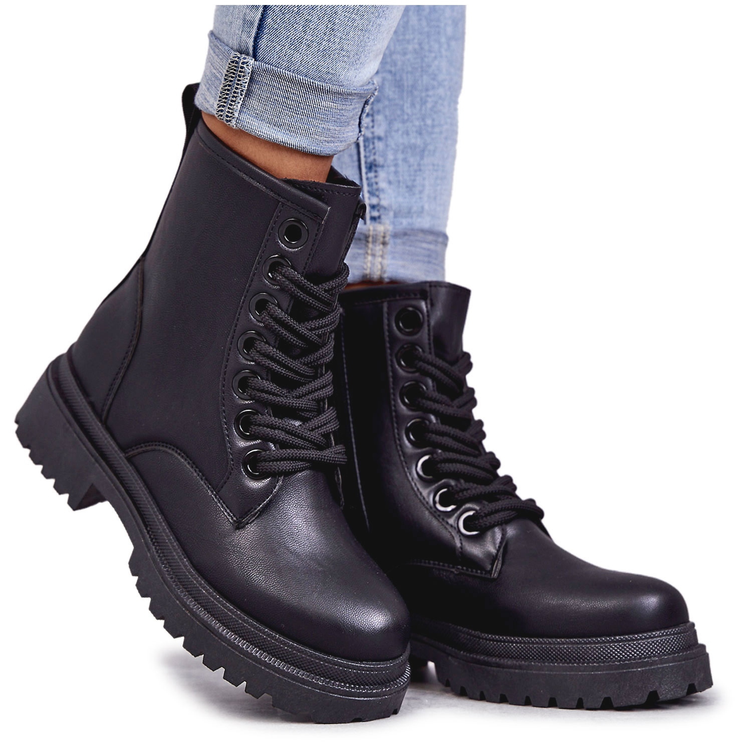 PE1 PE1 Dámské kožené boty Workers Black Denila černá
