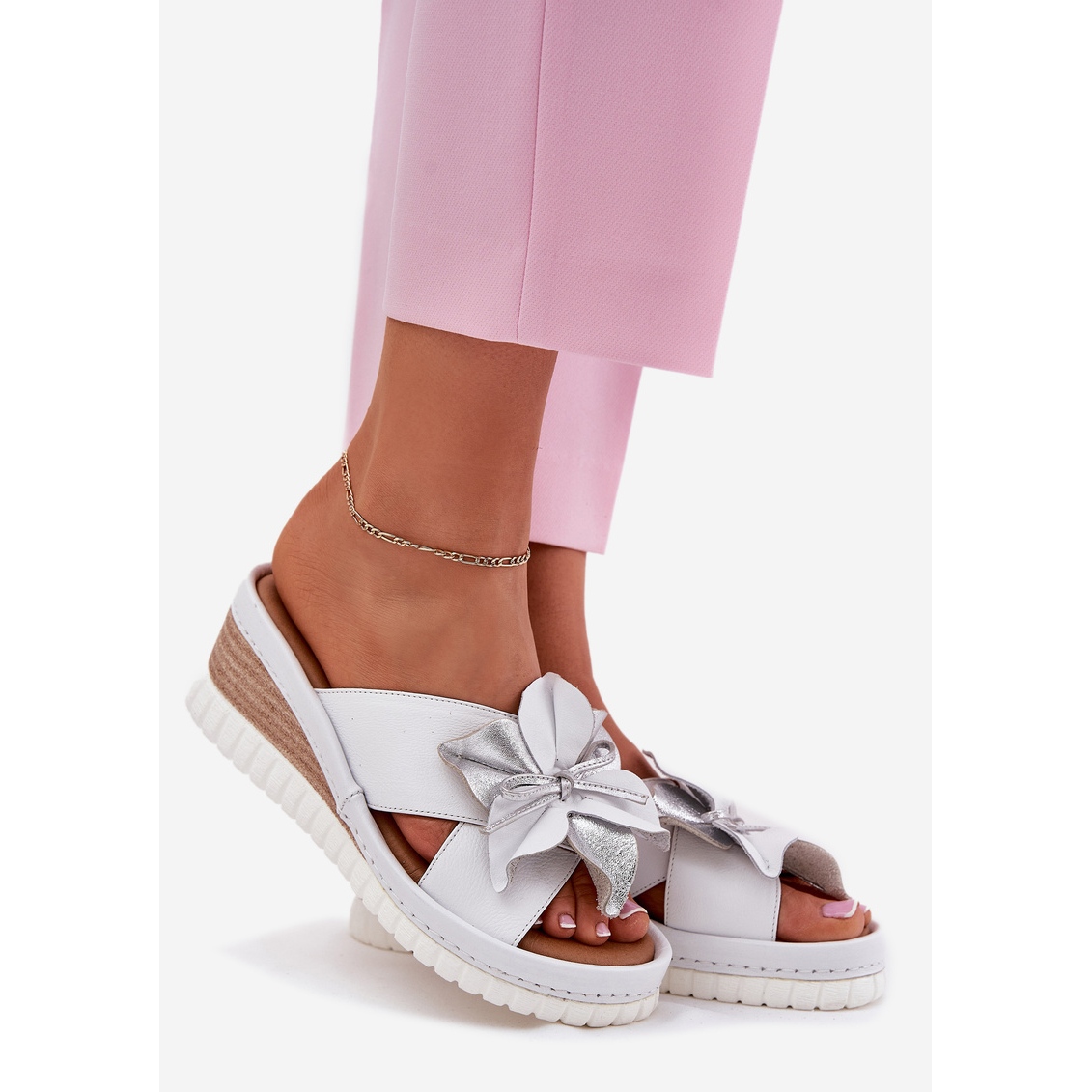 ARTIKER ARTIKER Dámské kožené klíny s dekorativní květinový artker 54C0538 bílé a stříbrné stříbrný