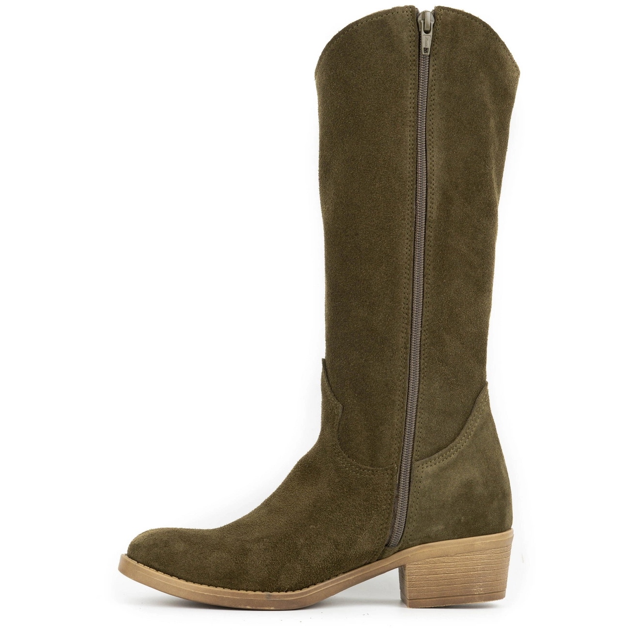 Olivier Julia - Dámská přirozená semišová kůže v zelené barvě. Klasické řezané kolenní řez jemným, mandlovým prstem a stabilní patou na bloku (5 cm) kombinuje pohodlí s nadčasovou elegancí - ideální jak pro každodenní stylizace, tak pro formálnější výstupy.