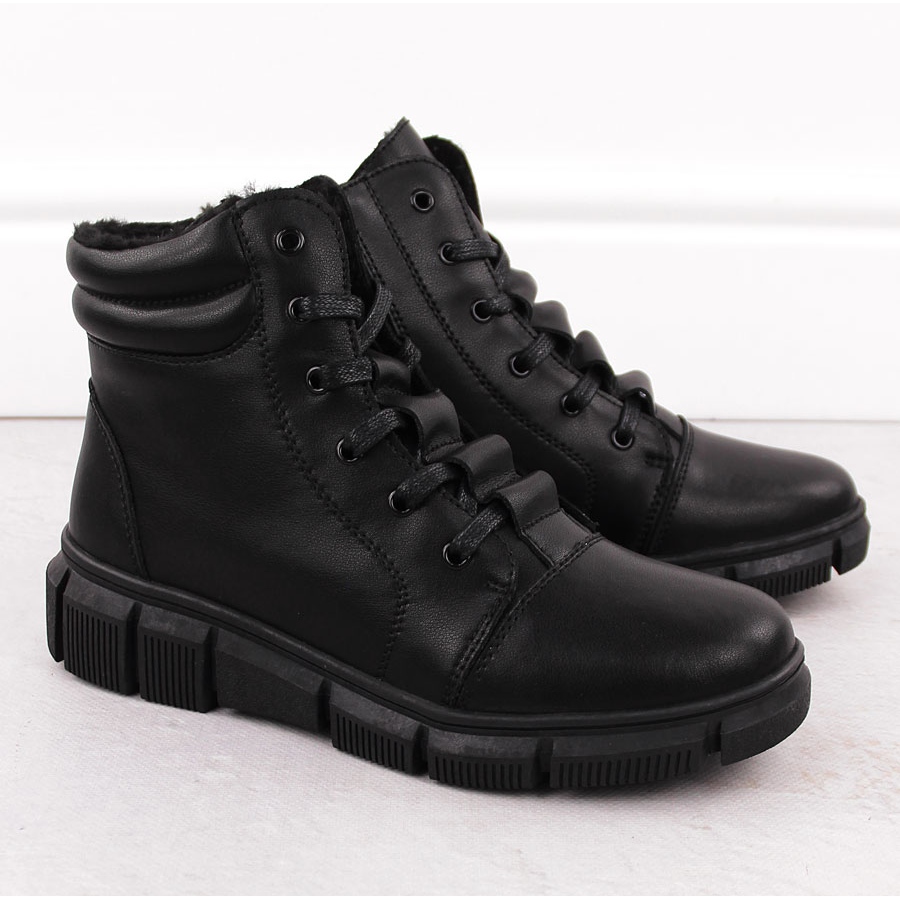 T.Sokolski Dámské kožené kozačky na platformě, černé, T.Sokolski Z24-335 černá