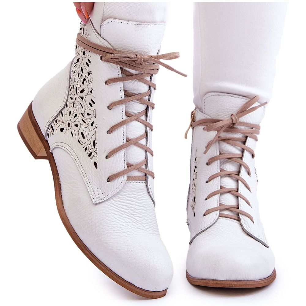 Lewski Shoes Lewski Shoes Dámské kožené kozačky na zip levé boty 3186 White Peas bílý