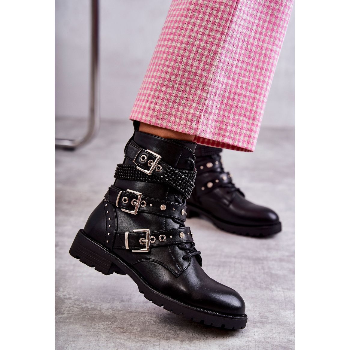 Ponořte se do světa módy s elegantními kotníčkovými botami PG1, které dokonale kombinují styl a pohodlí. Tyto černé kotníkové boty vyrobené z odolné ekokůže se vyznačují ozdobnými pruhy s kamínky, které jim dodávají jedinečný charakter. Tento model je nejen estetický, ale také funkční - nastavitelné popruhy s přezkami umožňují dokonalé přizpůsobení vaší noze.