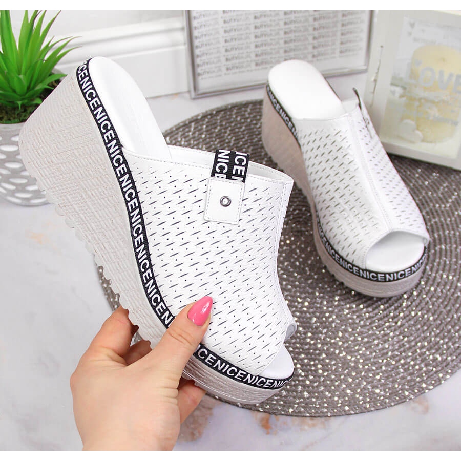 Podrobnosti: Dámské kožené pantofle na klínku bílé Artiker bílý