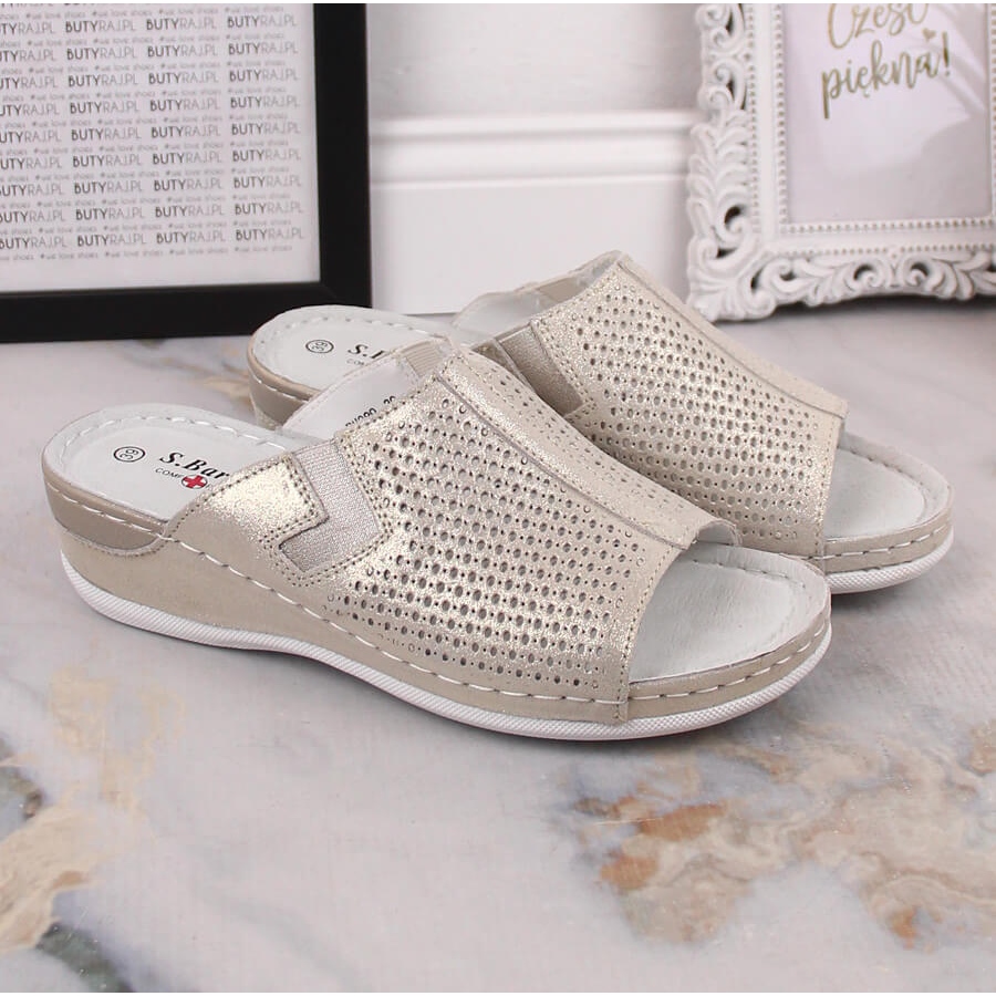 Podrobnosti: S.Barski Dámské kožené pantofle na zlatém klínku S. Barski zlatý