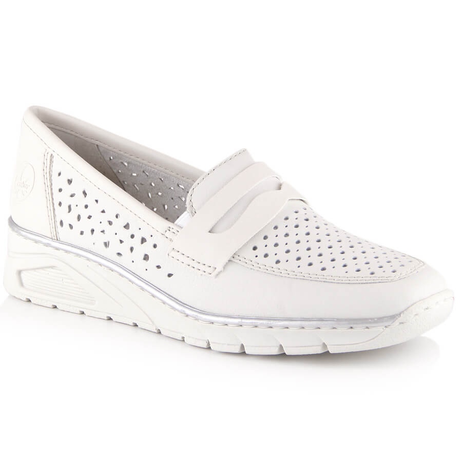Podrobnosti: Dámské kožené prolamované boty na klínku Rieker N3356-80 bílý