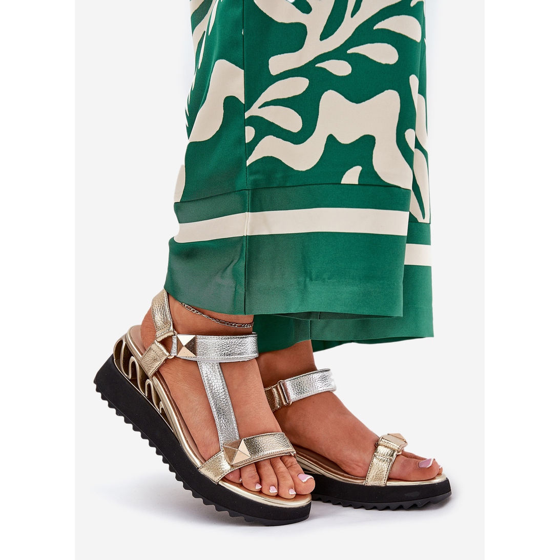 S.Barski S.Barski Dámské kožené sandály CR51-135 Zlaté a stříbrné zlatý