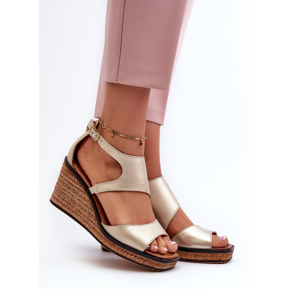 Maciejka Dámské kožené sandály na klínku Maciejka 06657-25 Zlatá zlatý