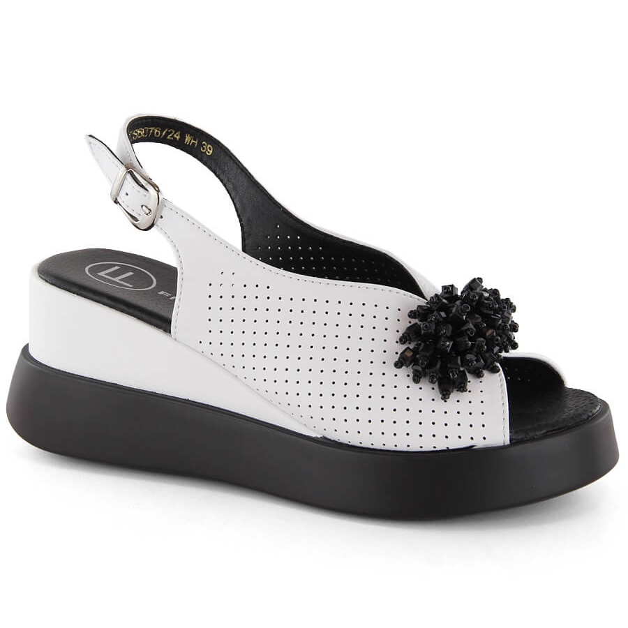 Filippo Dámské kožené sandály na klínku s korálky, bílé Filippo DS6076 bílý