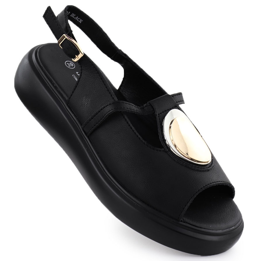 S.Barski S.Barski Dámské kožené sandály na platformě Czarne S. Barski GR51-603 černá