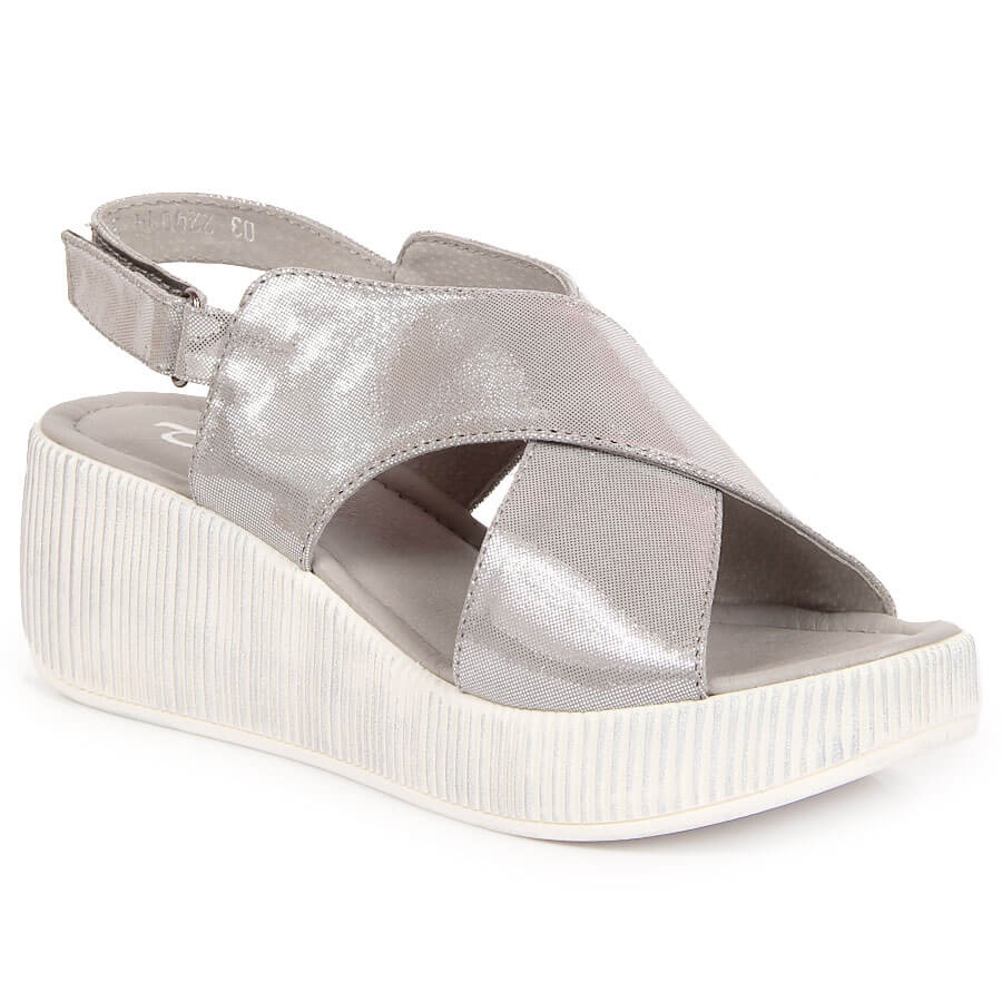 Podrobnosti: Dámské kožené sandály na stříbrném klínku Dolce Pietro stříbrný