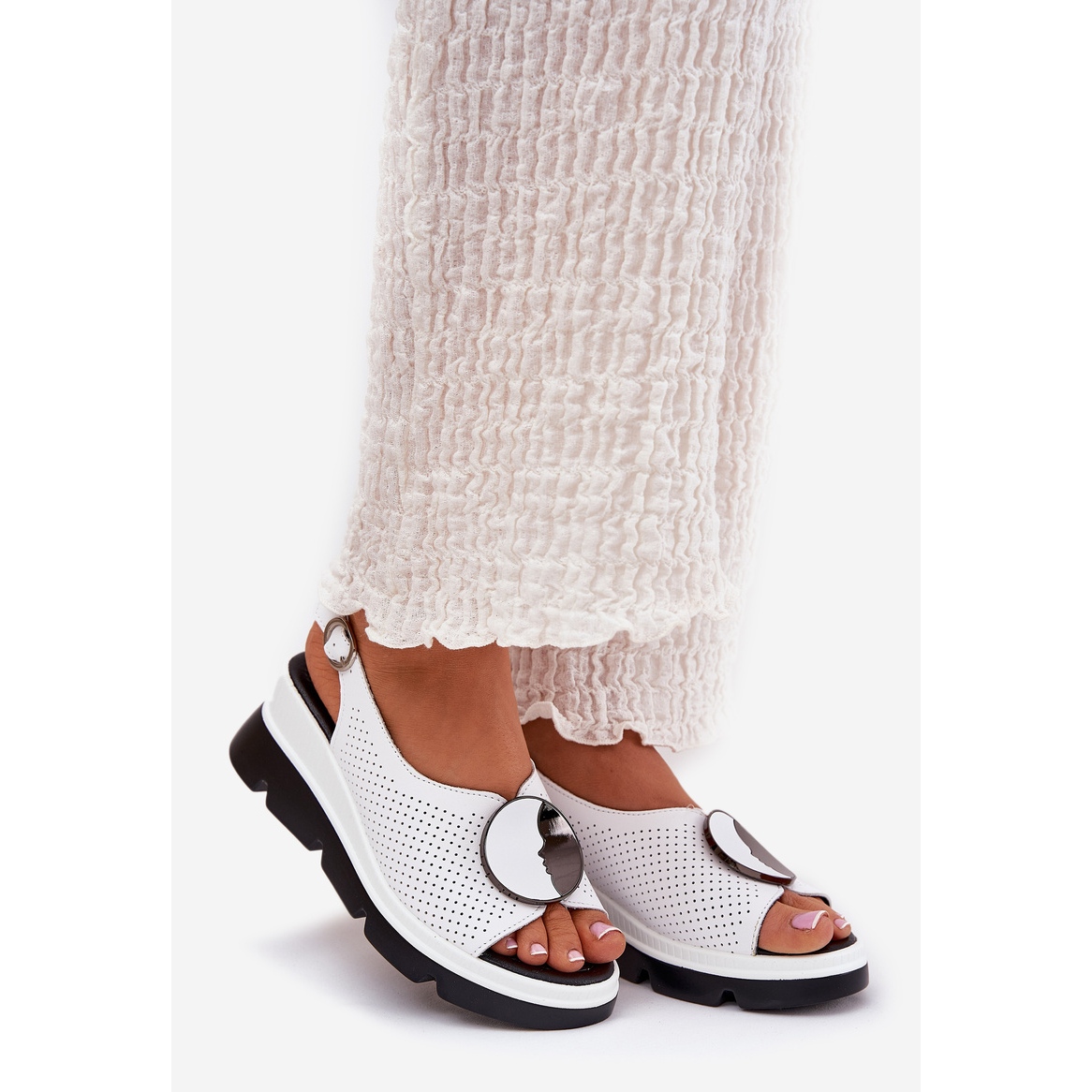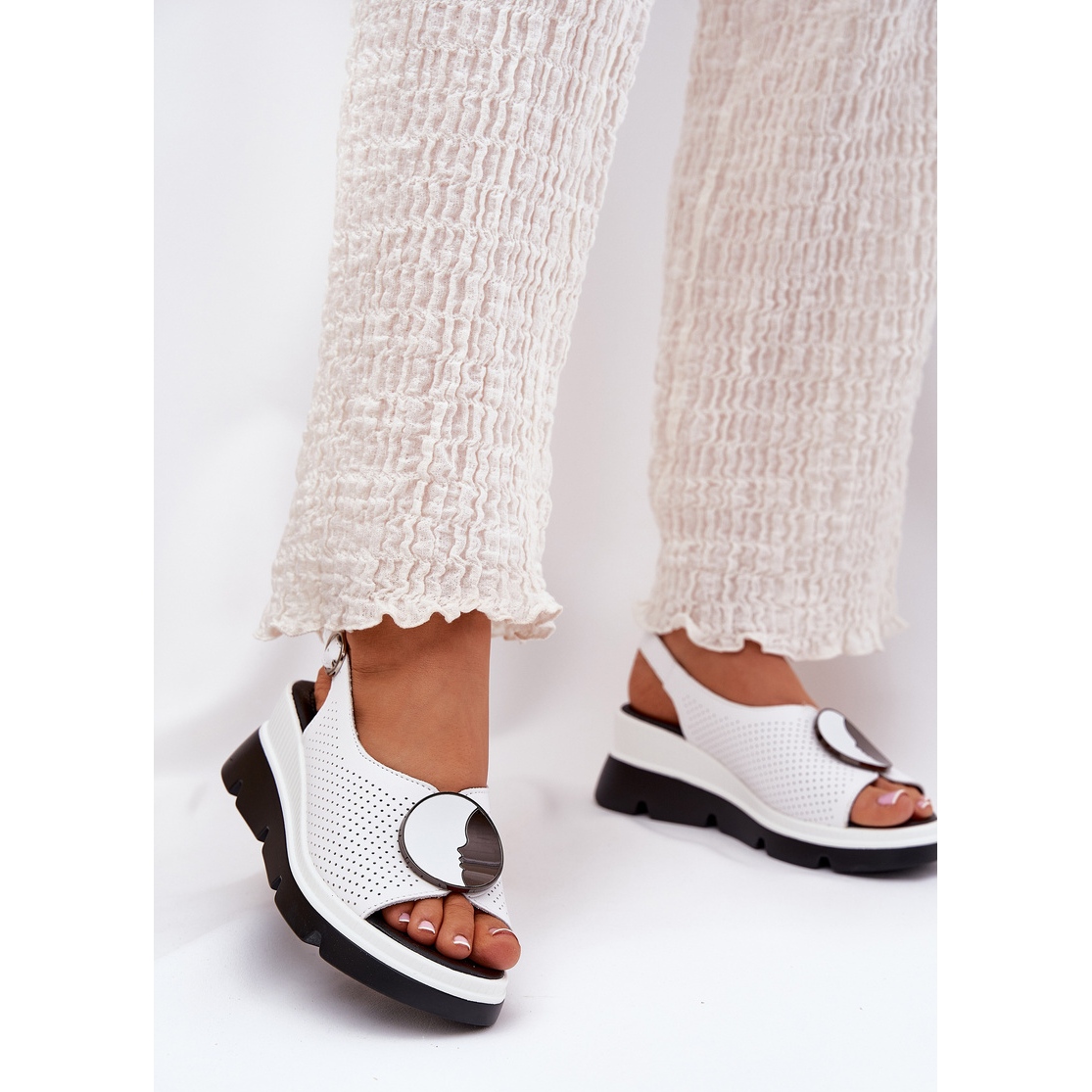 S.Barski S.Barski Dámské kožené sandály s klínem s ornamentem S. Barski LR51-788 WHITE bílý