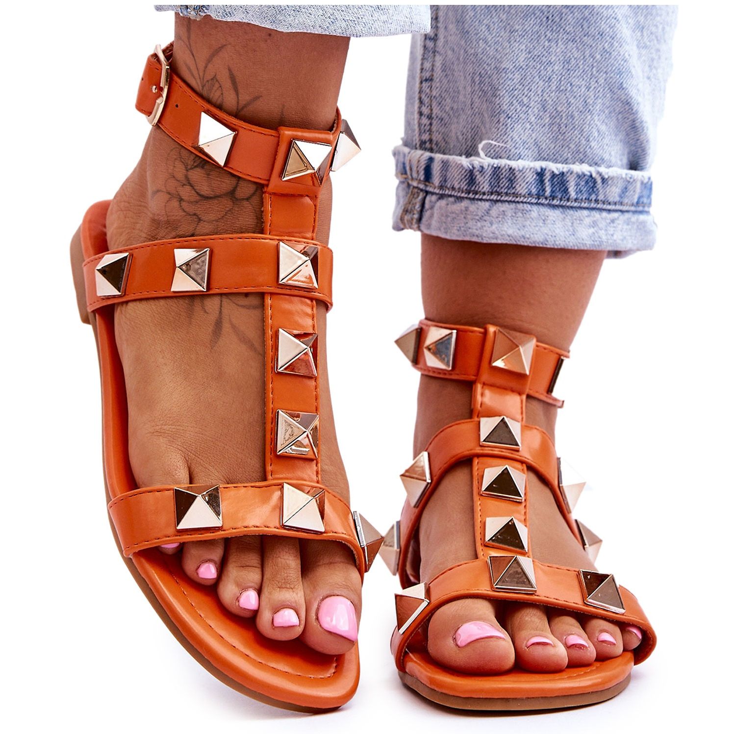 Inna marka Dámské kožené sandály s velkými cvočky oranžová Mishigan oranžový