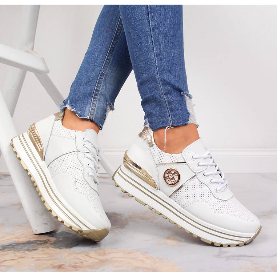 Podrobnosti: Dámské kožené tenisky na bílé platformě Filippo bílý