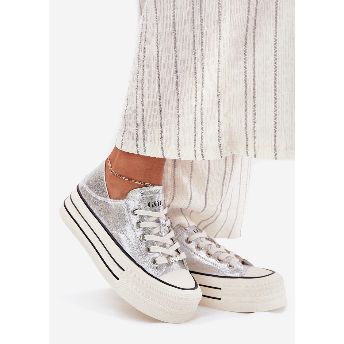 Dámské kožené tenisky na stříbrné platformě Goe RR2N4108 stříbro