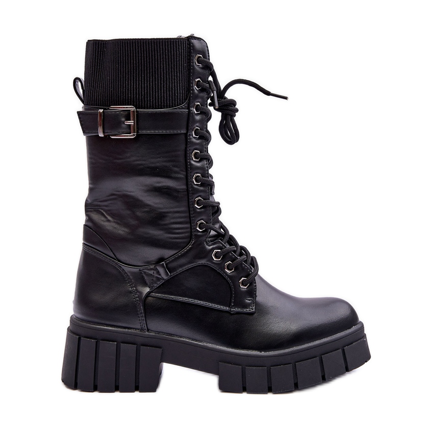 Kozačky mají praktické zapínání - boční zip umožňuje rychlé obouvání a vyzouvání, klasické šněrování zaručuje dokonalé přizpůsobení noze. Elastická vsadka navíc usnadňuje přizpůsobení bot různým obvodům lýtka a pásek s přezkou nejen dodává charakter, ale umožňuje upravit i šířku svršku.