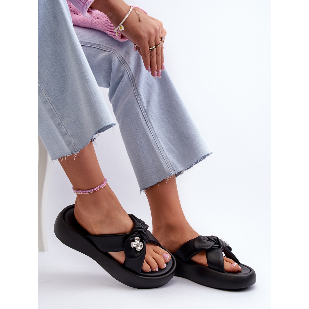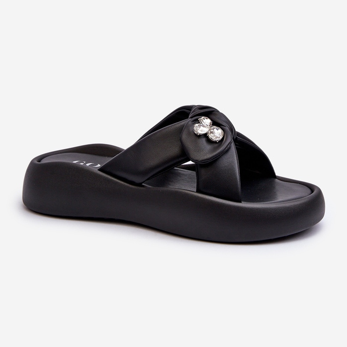 Platforma s vysokou 3,5 cm zaručuje stabilitu při chůzi, což z nich dělá skvělou volbu pro každodenní procházky nebo letní výlety. Další prvky, jako jsou drahokamy a luk, dávají klapkám jedinečný charakter, díky kterému se v každé stylizaci stanou módním přízvukem.
