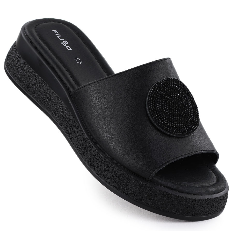 Dámské kožené žabky s bundy Black Filippo 6987 černý