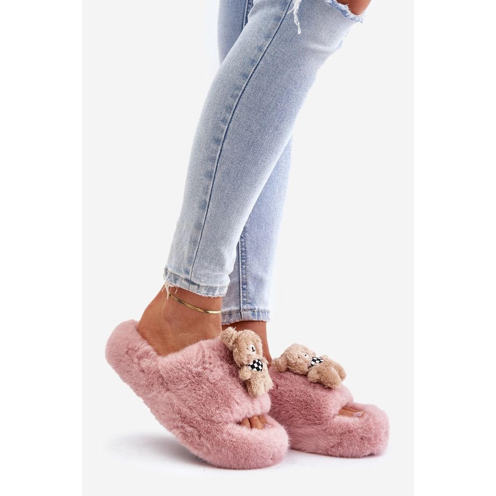 Inna marka Dámské kožešinové pantofle s medvídkem, růžové Rumunsko růžový