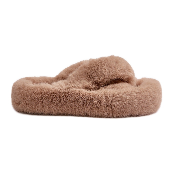 Inna marka Dámské kožešinové pantofle se silnou podrážkou, béžová Lavitera béžový